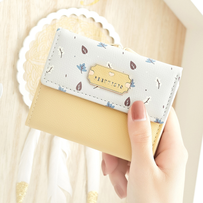 Women’s Short Wallet Wholesale Korean Style PU Printed Three-fold Bag Niche Student Folding Coin Coin Purse Women’s Card Bag