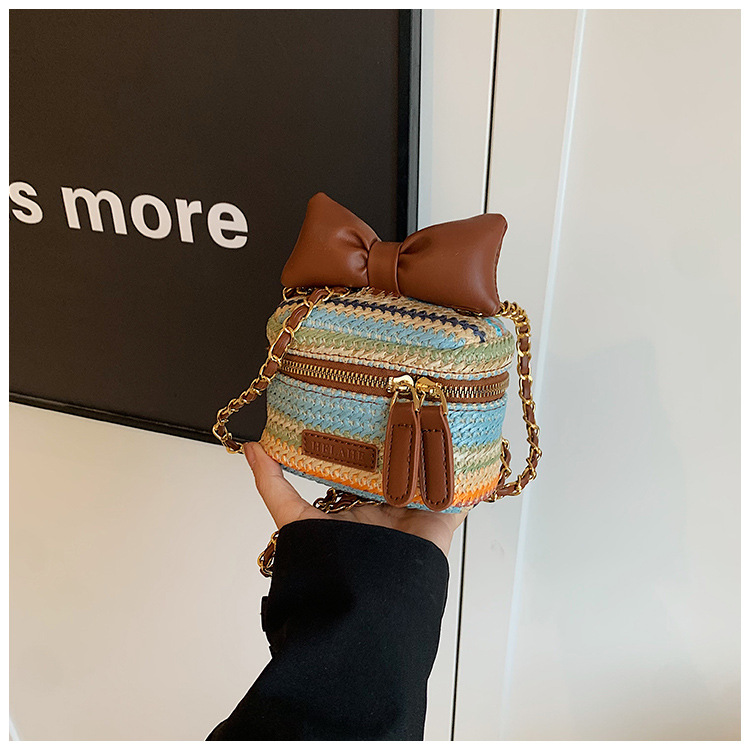 Children’s Bag 2024 New Bow Small Satchel Striped Fashion Handmade Woven Bag Girl Stylish Box Bag