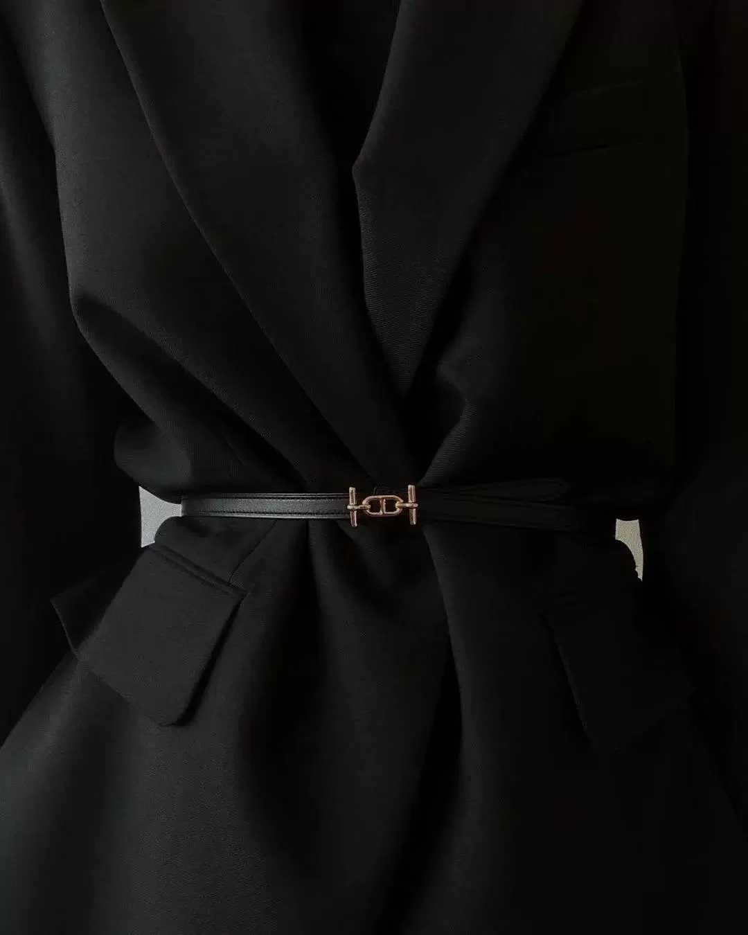Leather belt retro vintage French pig nose retro button versatile belt temperament waist seal with pants