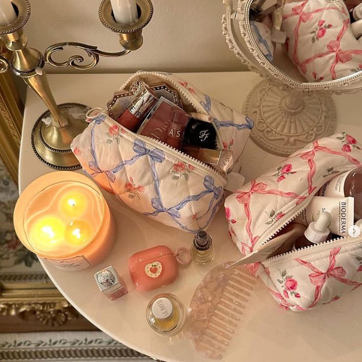 In stock bow rose flower cosmetic bag European and American gift wash bag travel cosmetics storage bag