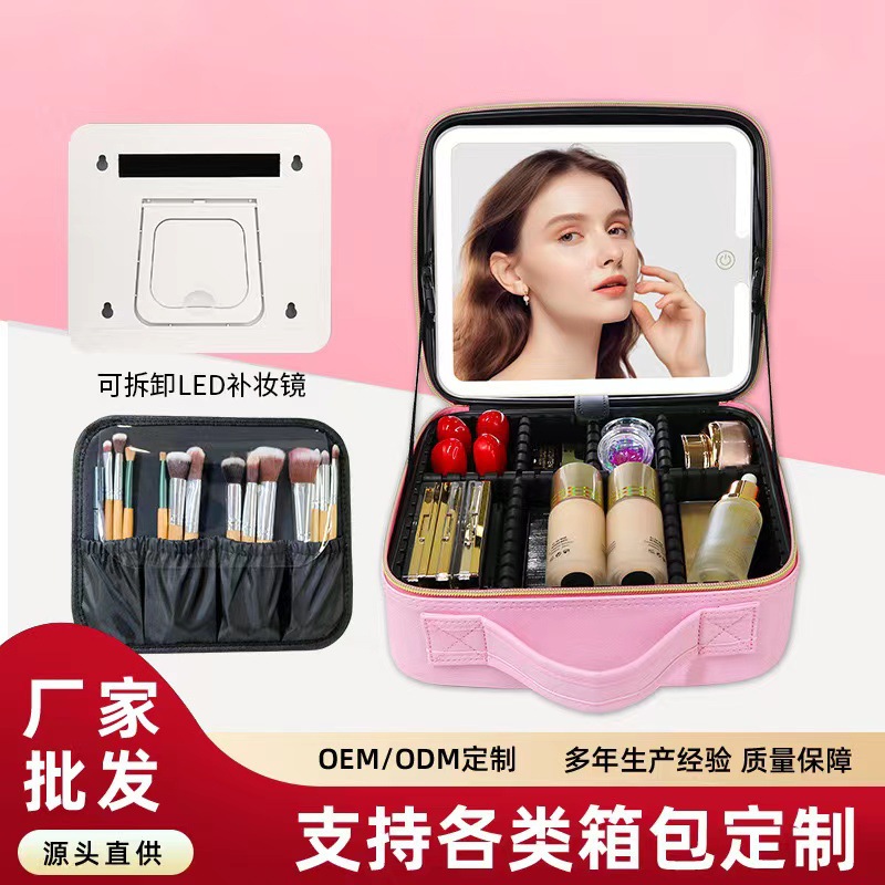 Cosmetic Case with Light Cosmetic Bag Cosmetic Travel Multifunctional Tattoo Nail Art Tool with Partition with Mirror