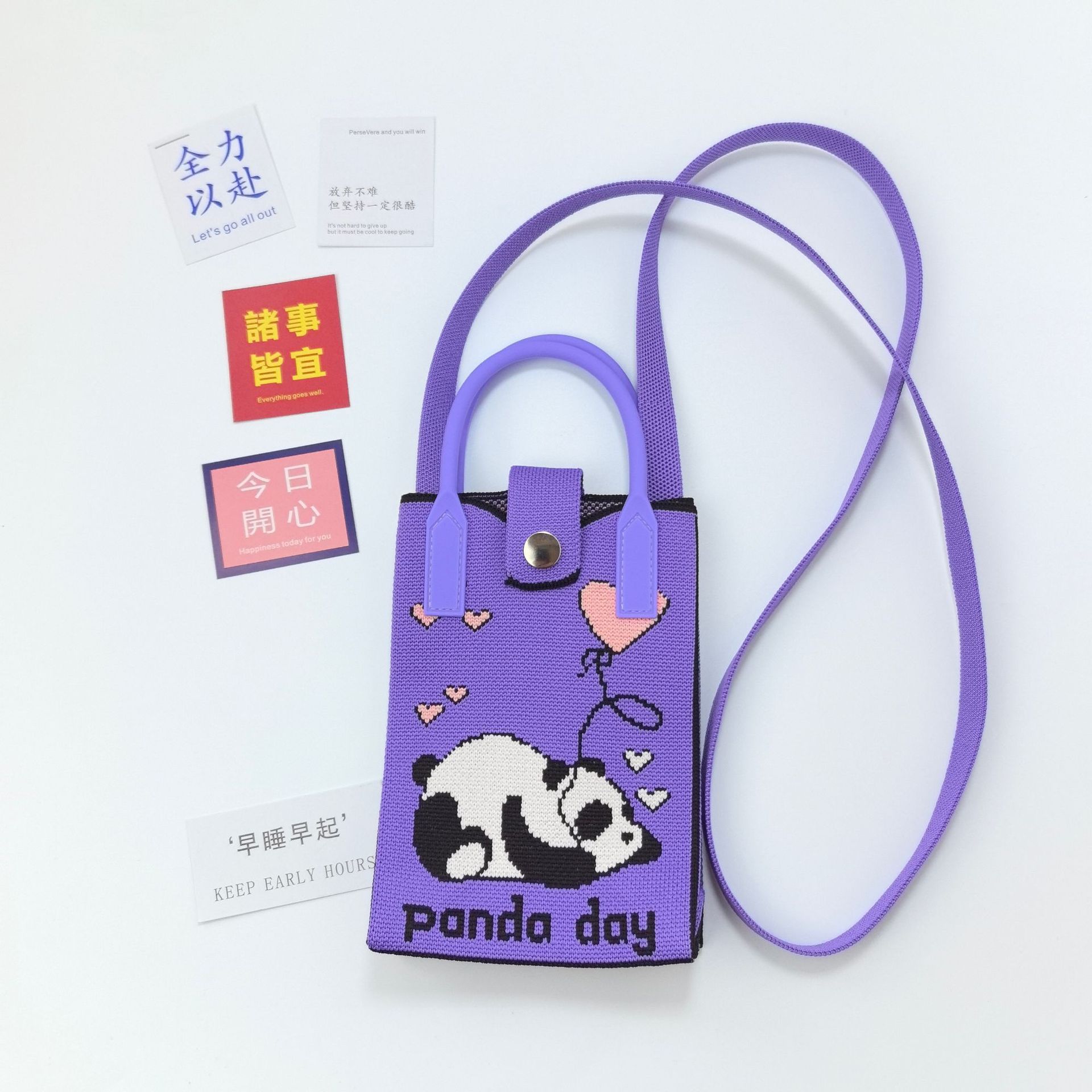 2024 New Flying Woven Bag Khachi Cute Panda Mobile Phone Bag Fashionable All-match Convenient Storage Knitted Casual Bag