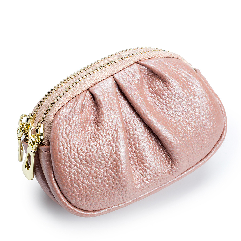 Small Wallet Coin Purse Women’s Simple Genuine Leather Multifunctional Practical Elegant Pleated Double-Layer Zipper Coin Bag for Women