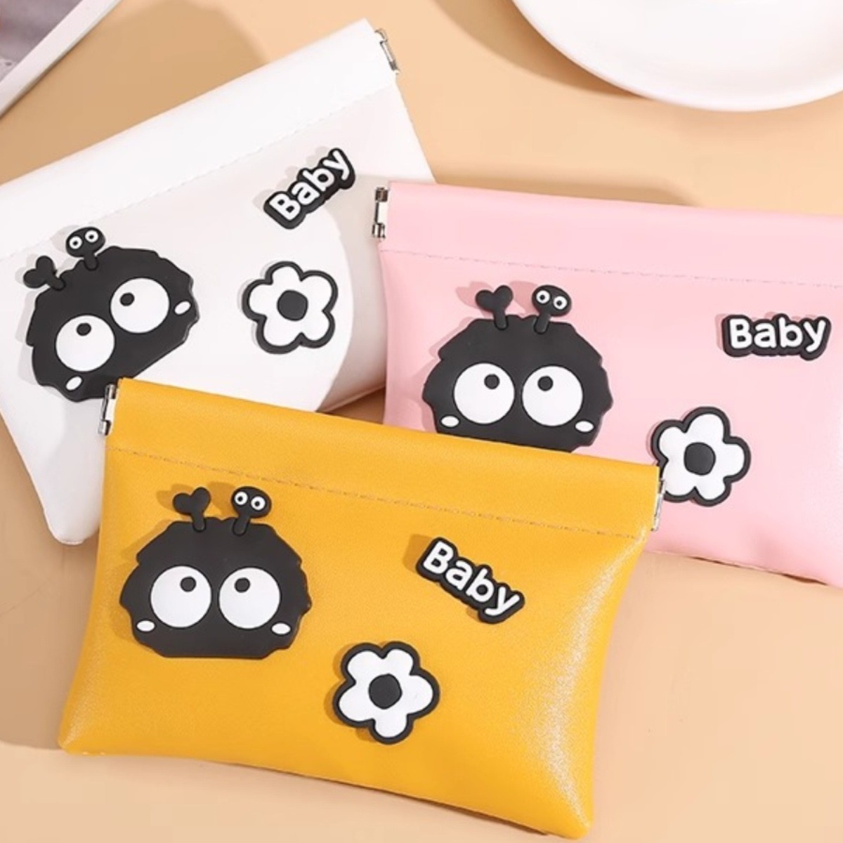 Cosmetic Bag Black Coal Ball Big Eyes Lipstick Data Cable Storage Bag Jewelry Coin Purse Portable Automatic Closure