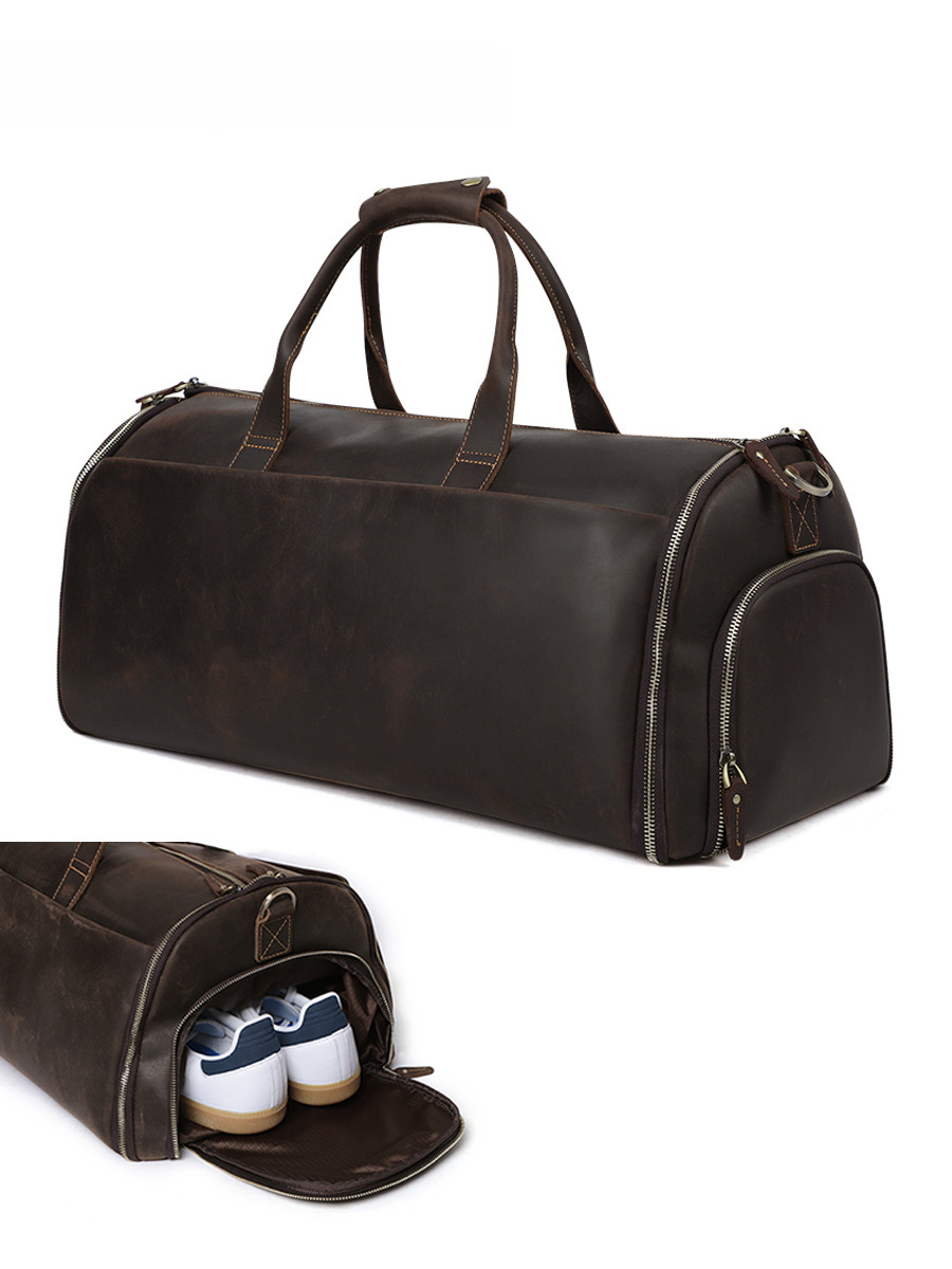 Genuine Leather Men’s Luggage Bag Portable Business Travel Bag Large Capacity Retro Men’s Gym Bag Foldable Luggage Bag