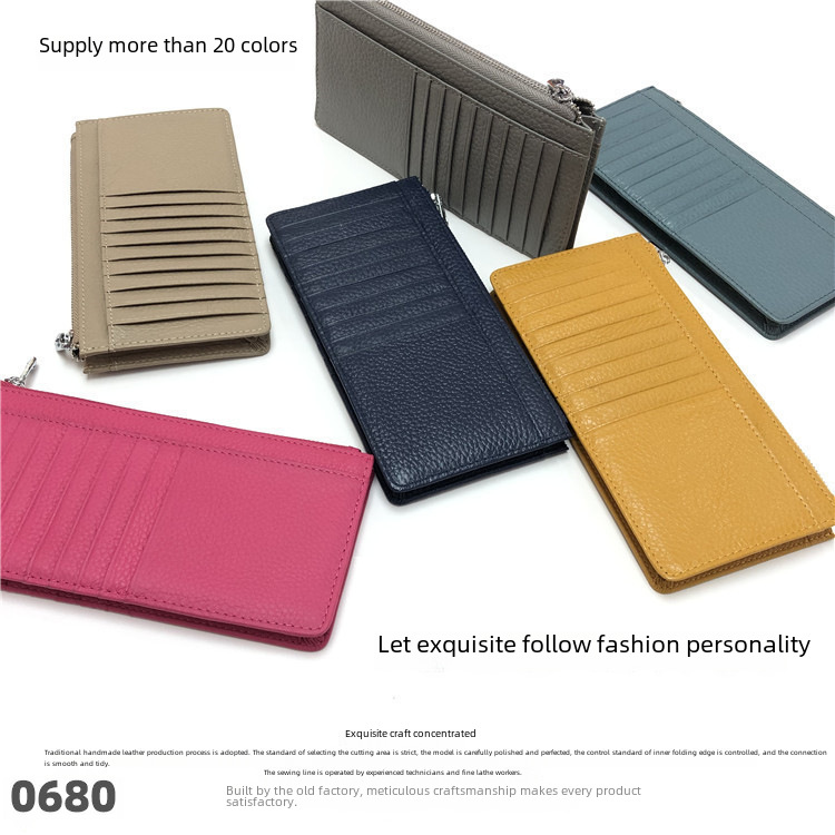 Women’s Genuine Leather Fashion Long Zipper Mobile Phone Wallet Advanced Sense Cowhide Men’s Large Capacity Card Case Two-in-One Spot