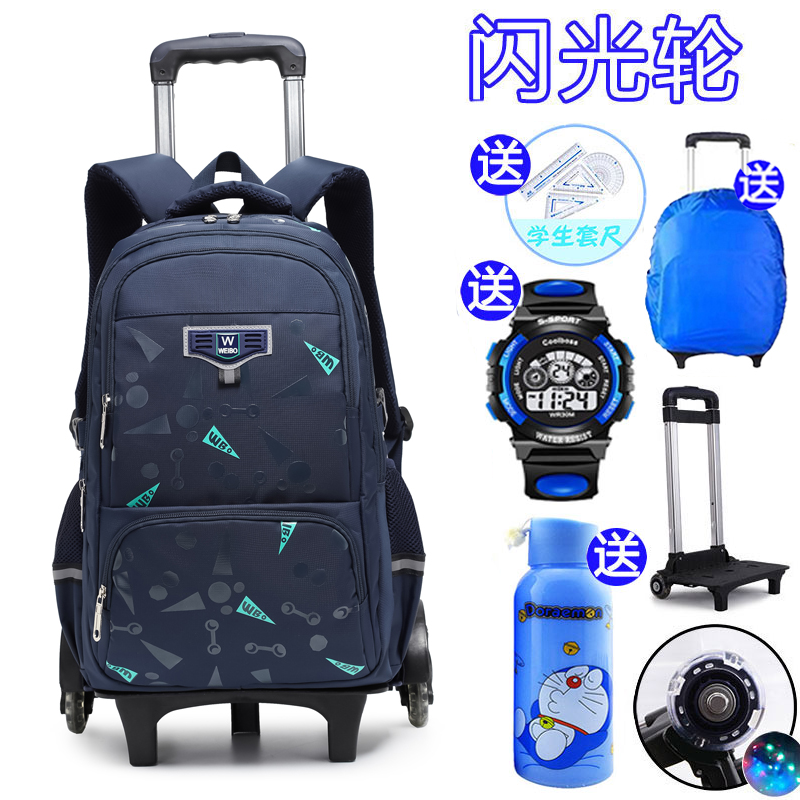 Primary school students, grade 4-5-6 boys, trolley schoolbag, junior high school backpack, removable reinforcement, six wheels of climbing stairs