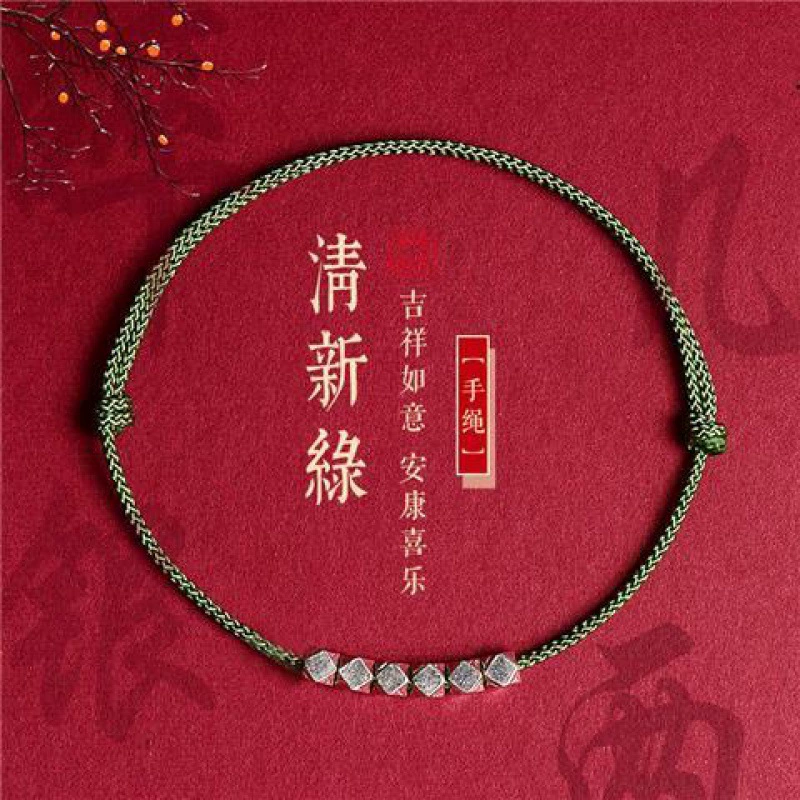 Red rope couple of sterling silver anklets for women, simple transfer beads