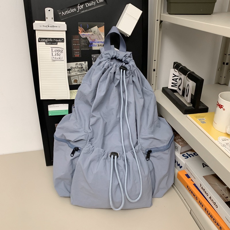 Japanese Style Casual Artistic Canvas Backpack Ins Fashionable Pleated Nylon Schoolbag Internet Celebrity Fresh Style Drawstring Backpack