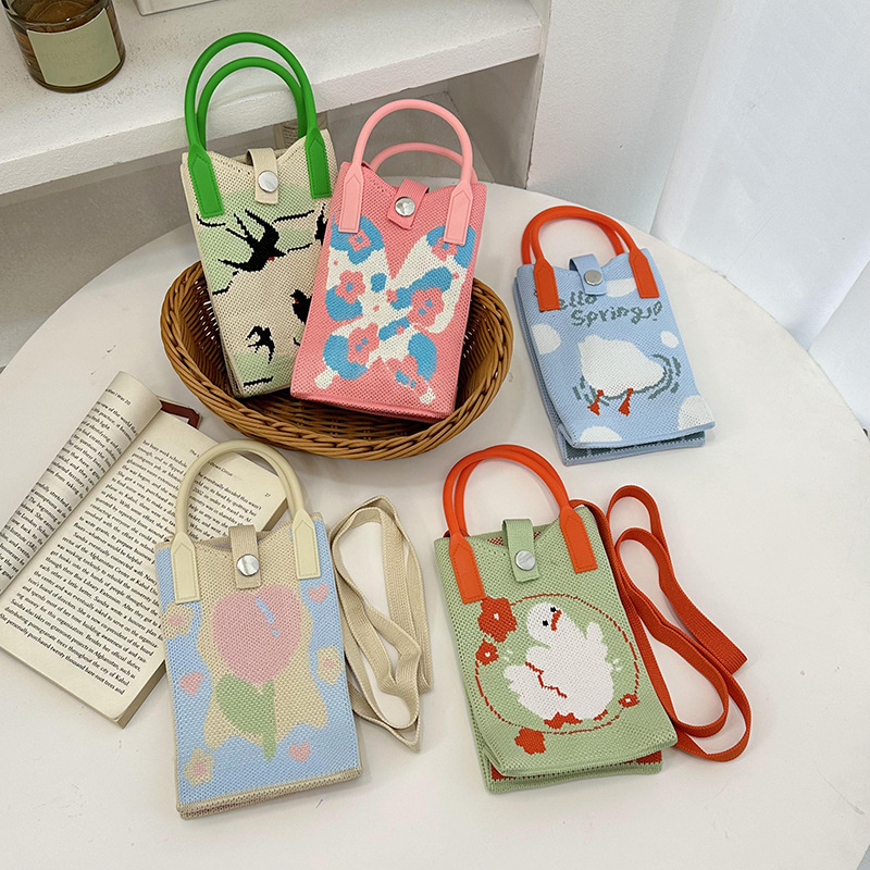 Knitted mobile phone bag Korean version of spring series slung niche Joker storage change wallet a generation of hair