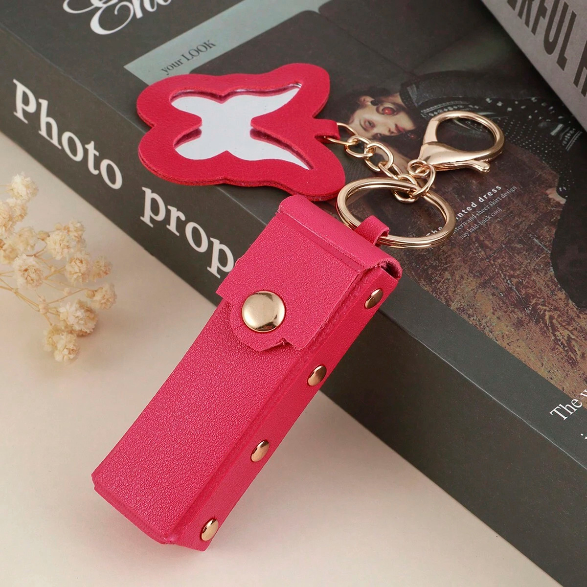 Amazon Hot Lipstick Leather Case Portable with Small Mirror Red Bag Lipstick Storage Case Keychain Gift