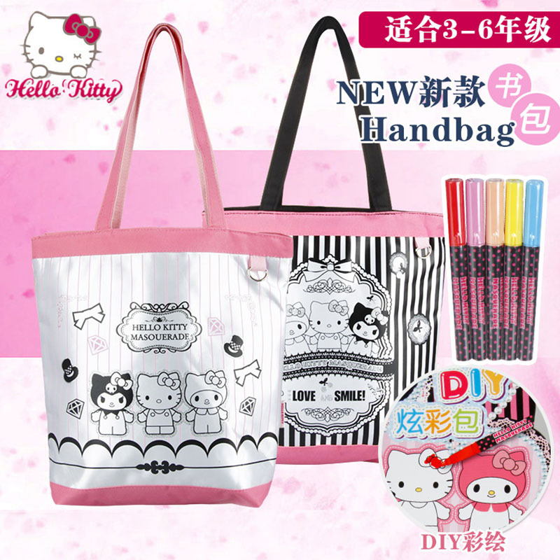New generation hellokitty tutorial bag girl colorful handbag creative DIY painted bag does not fade