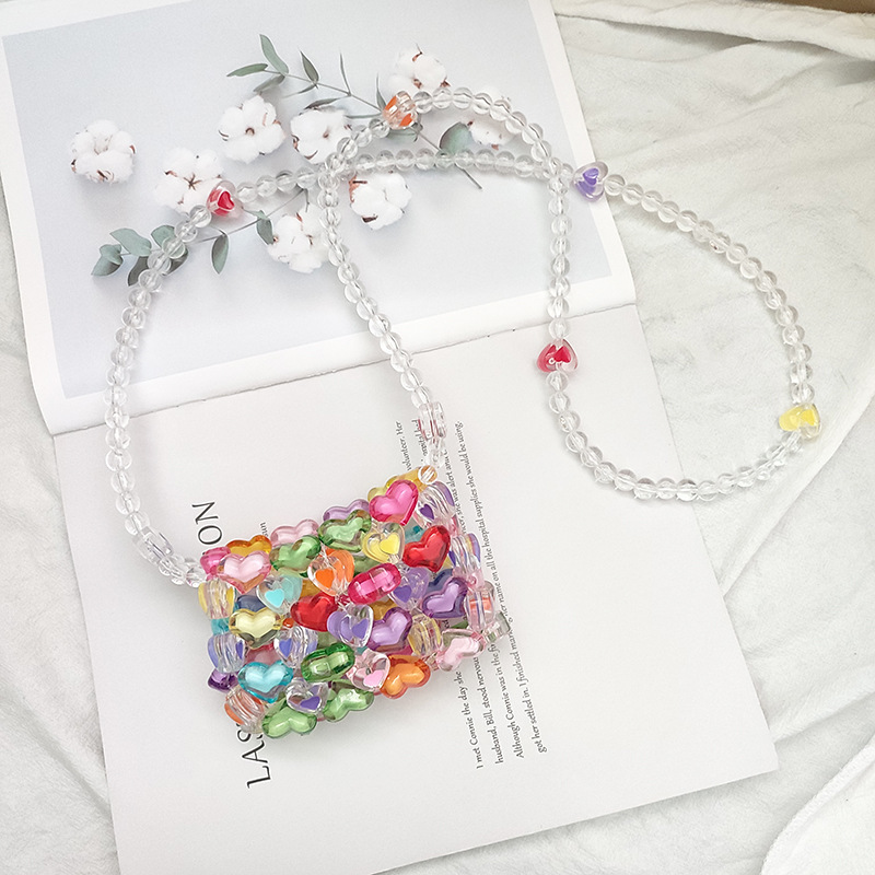 Children’s Colorful Love Bead Bag Cute Handmade Woven Pearl Handheld Crossbody Bag Internet Celebrity Bead Bag