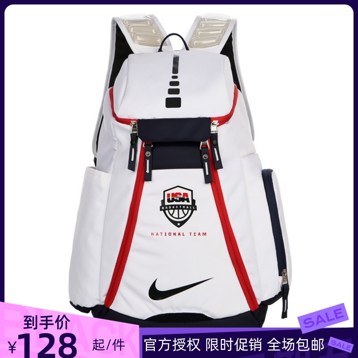 American Backpack Men’s Air Cushion USA Basketball Bag Large Capacity Student Schoolbag Outdoor Travel Bag Training Sports Bag