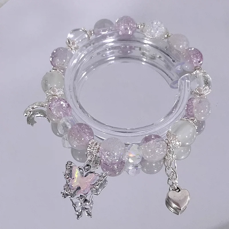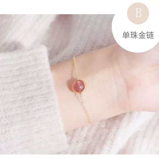 Summer strawberry crystal bracelet for women Korean version simple pink crystal student girlfriend gift pink crystal ins niche design