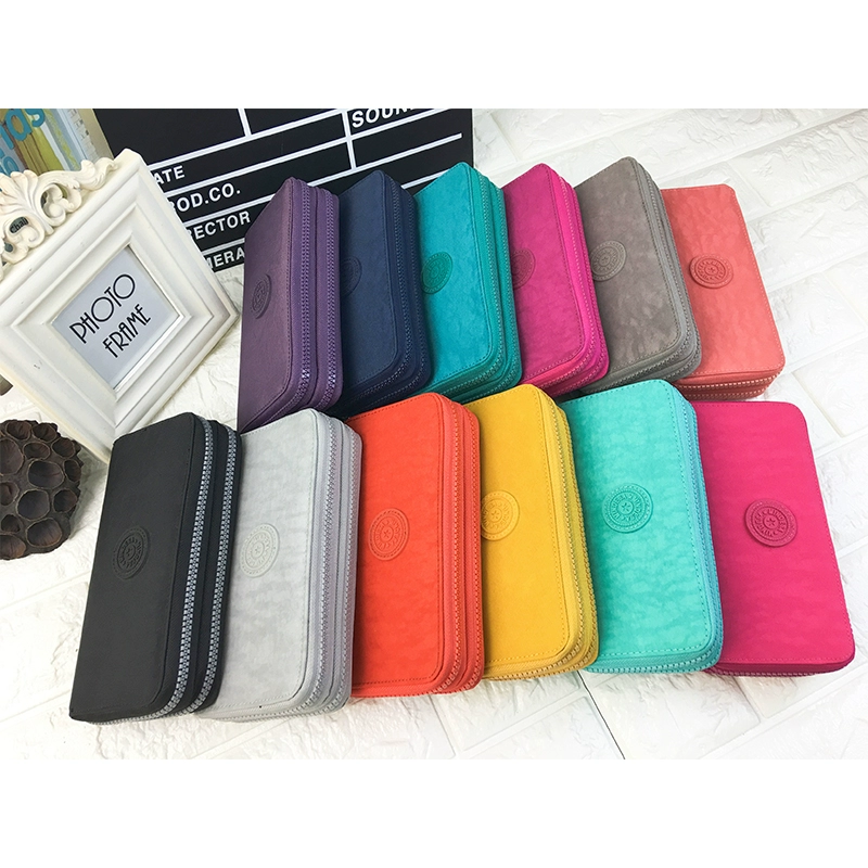 Nylon anti -splashing female handbags are fashionable, lightweight long long double zipper multi -layer wallet card bag clip female bag