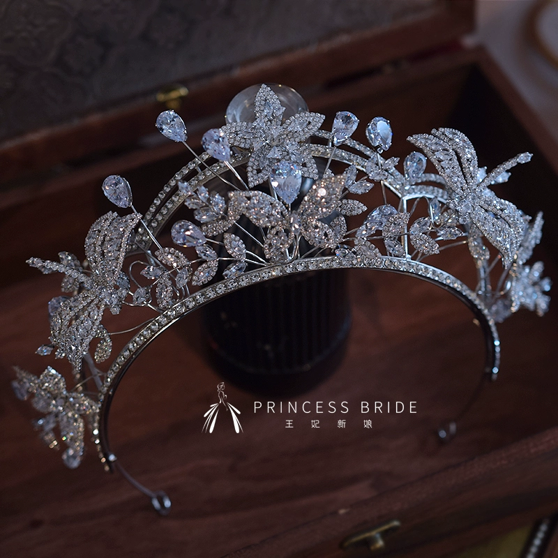 Princess crown forehead earrings and wedding dress zircon