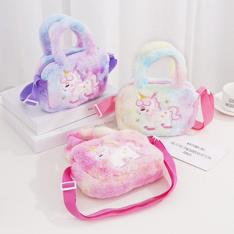 Cross-border cartoon unicorn square plush shoulder bag kindergarten boys and girls messenger bag cute cartoon handbag