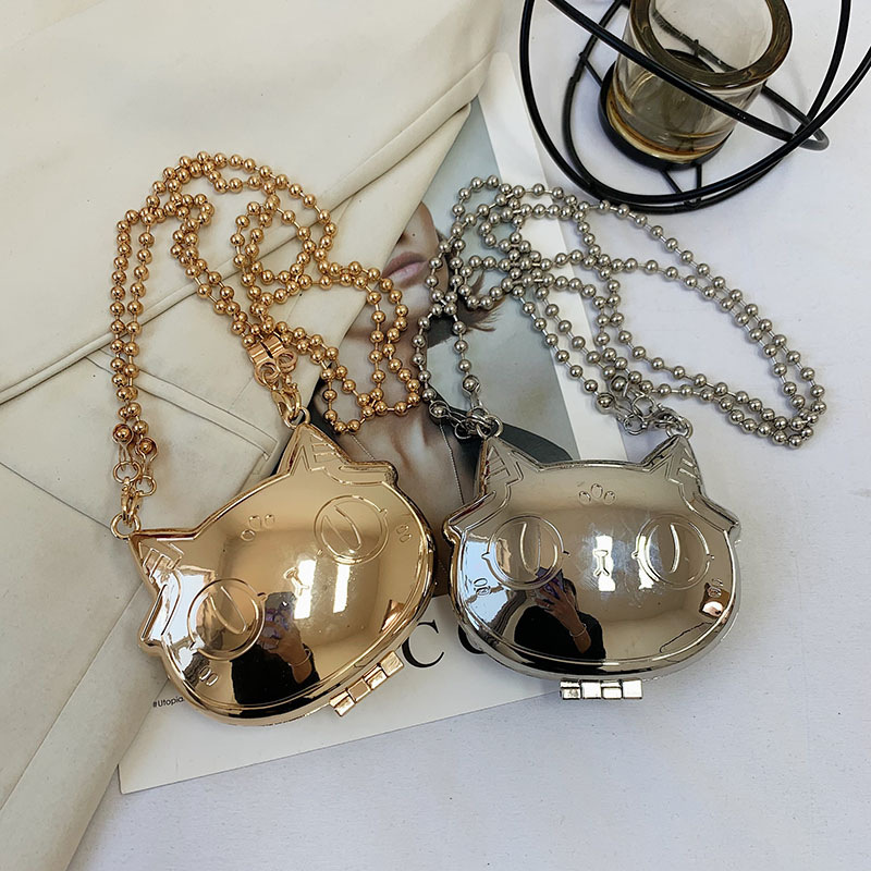 Mini Metal Beaded Cat Head Bag 2024 European and American Fashion Personality Ins Internet Celebrity Girl’s Shoulder Crossbody Chain Bag