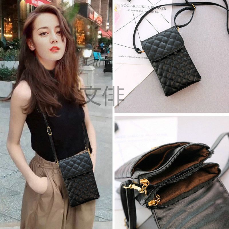 Wp Large Screen Soft Leather Zipper Rhombic Mobile Phone Bag Women’s Crossbody Pack Small Bag Key Coin Purse Mobile Phone