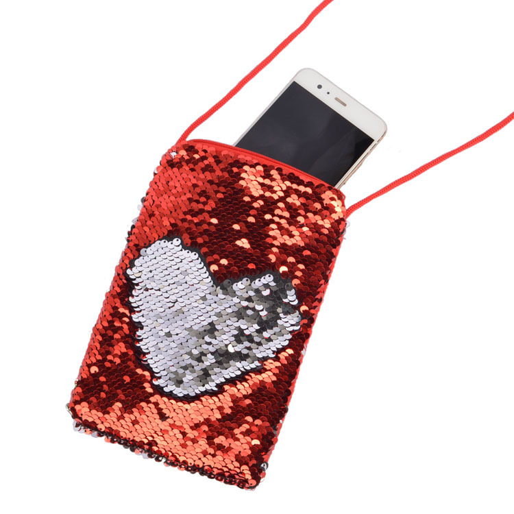 Fashion sequins mobile phone bag women’s Fabric mobile phone bag hanging neck sports arm bag vertical coin purse mermaid bag wholesale