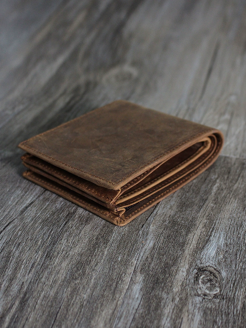 Informer Crazy Horse Leather Simple Short Wallet First Layer Cowhide Retro Men’s and Women’s Large Capacity Card Holder Wallet Genuine Leather