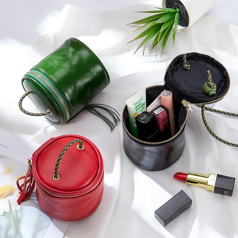 2022 New Bucket Mouth Red Bag Soft Genuine Leather Niche Design Simple Coin Storage Coin Purse Crossbody Bag