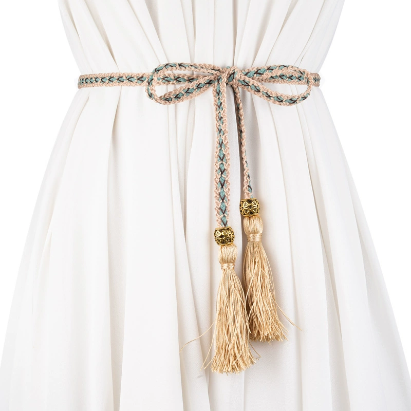 Artistic girl’s knotted tassel decorative rope slim waist chain