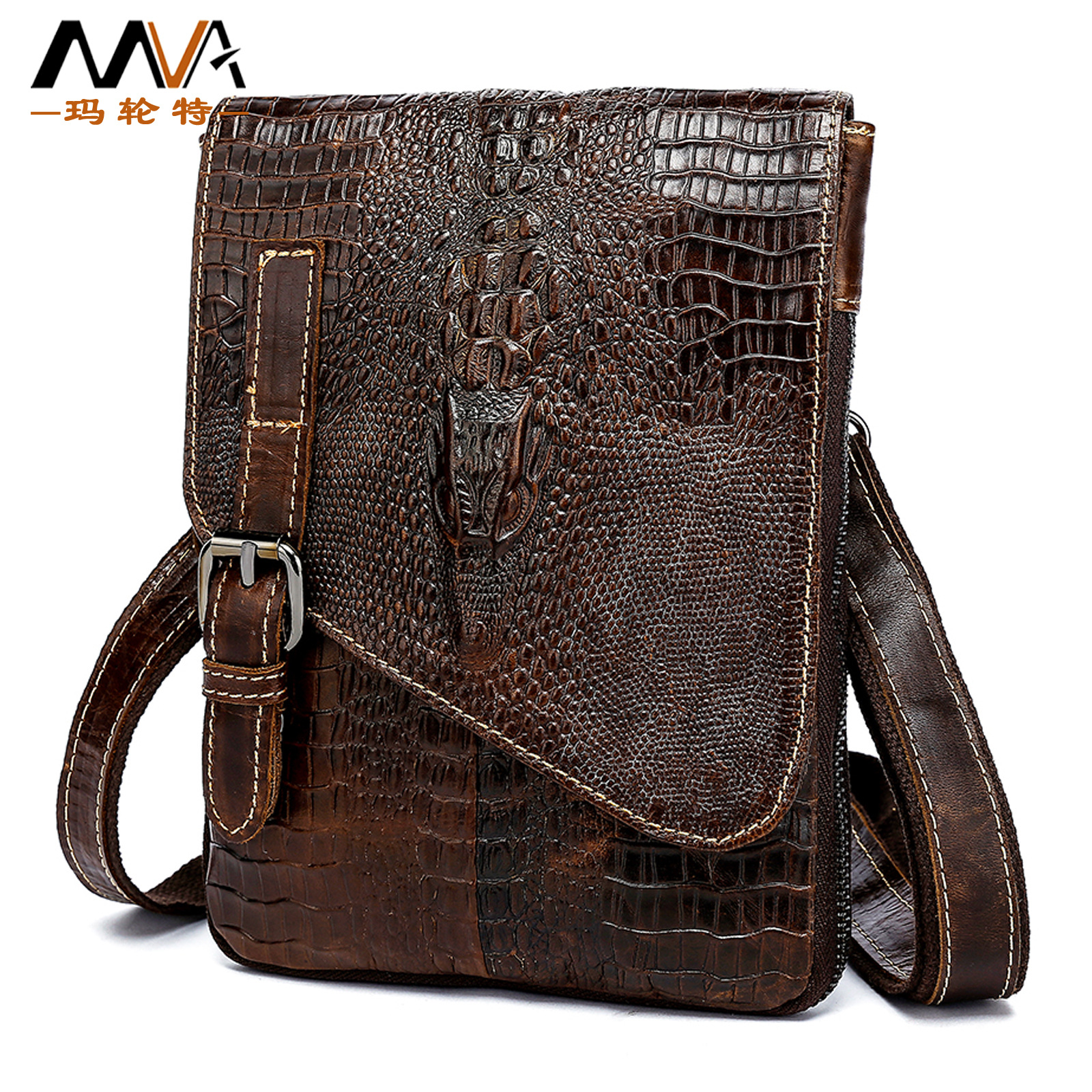 Crocodile Style Men’s Bag Men’s Shoulder Crossbody Bag Genuine Leather Casual Small Satchel Multi-Functional Belt Mobile Phone Waist Bag