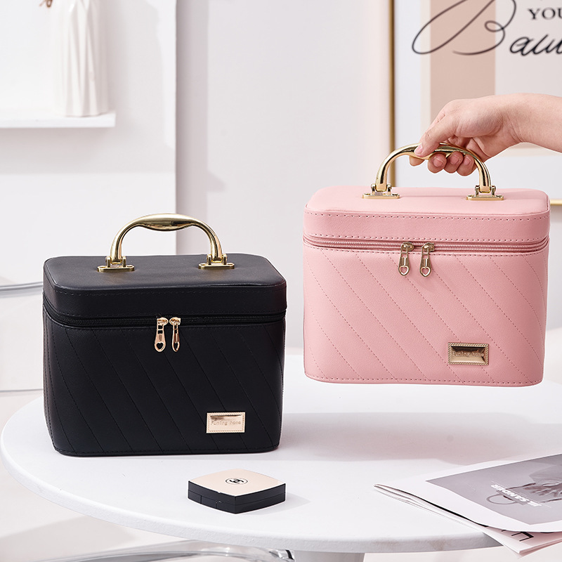 2024 new cosmetic case ins simple large capacity storage bag high sense PU waterproof portable suitcase wholesale