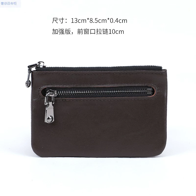 Sheepskin zipper coin key bag genuine leather men’s short small wallet mini hard and portable