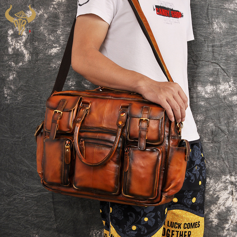Top layer Crazy Horse leather cowhide foreign trade Men’s 16 inch domineering large capacity portable document computer bag 3061