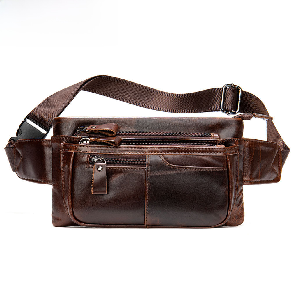 Malute Waist Bag Multifunctional Men’s Genuine Leather Messenger Bag Men’s European and American First Layer Cowhide Chest Bag Waist Bag Wholesale
