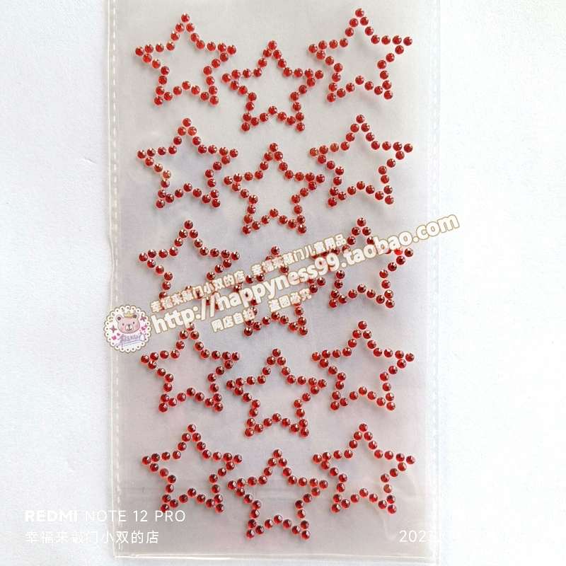 Acrylic diamond star stickers can be used to decorate the face of mobile phones. A single star can be peeled off to create a total of 15 five-pointed stars.