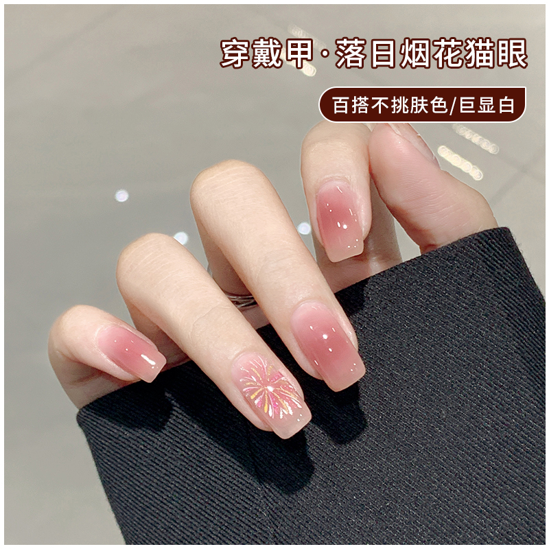 Internet celebrity popular sunset fireworks purely handmade wearable nail stickers to show whitening manicure wearable nails with a high-end feel