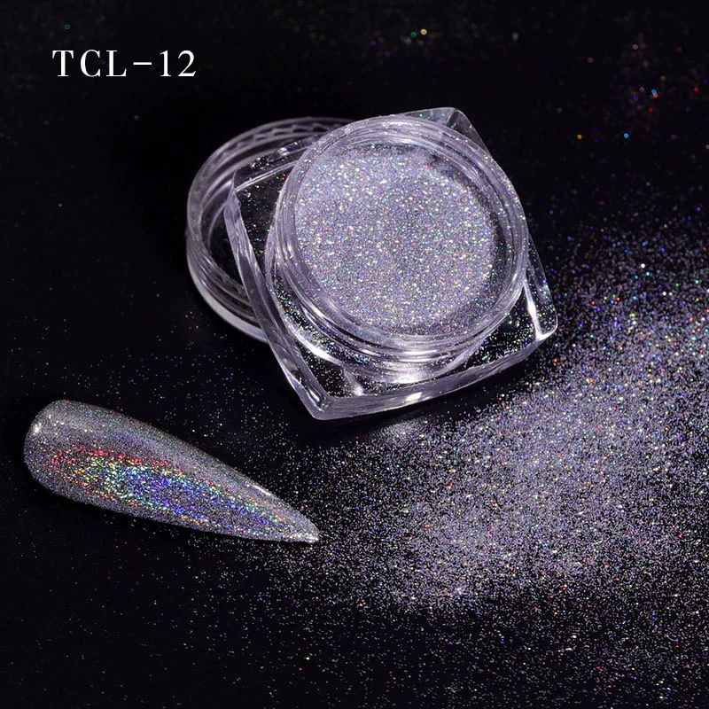 Holographic Powder on Nails Laser Silver Glitter Chrome Nail