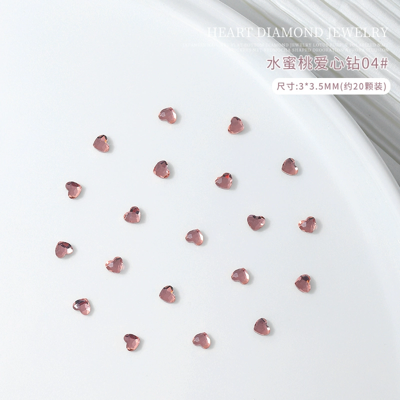 20 mixed mini love nail art accessories, colorful small hearts, peach hearts, flat bottom special-shaped diamonds, flashing nail diamonds