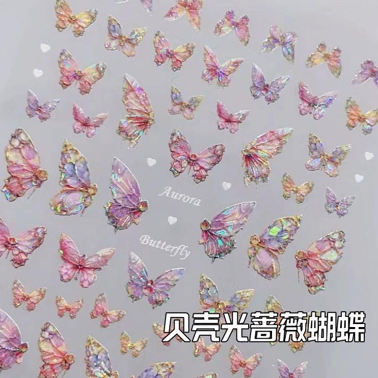 Shell Light Pearlescent Rose Butterfly Nail Art Stickers Elegant Butterfly Cute and Smart Fairy Butterfly Nail Art Stickers