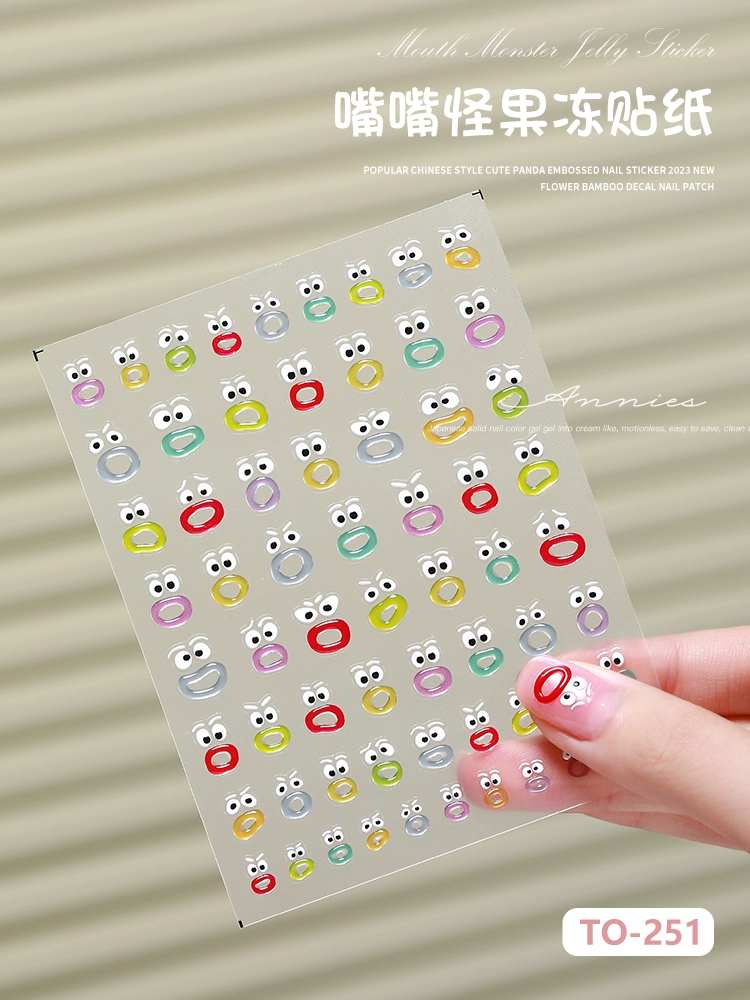 Pouty cartoon cute graffiti style embossed nail stickers