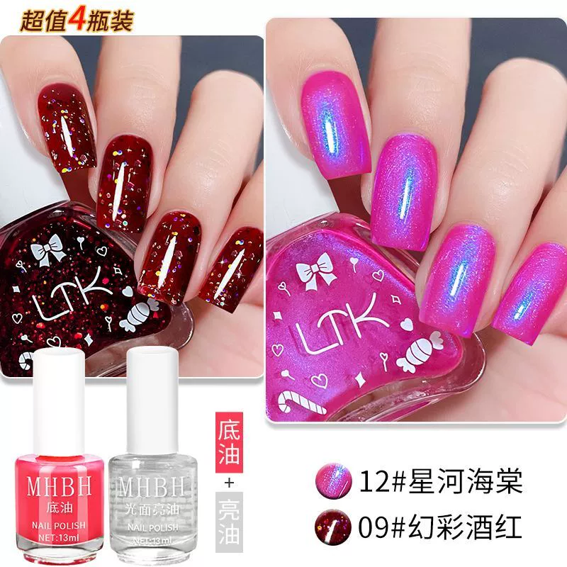 Nail polish burgundy toe no bake quick drying glitter