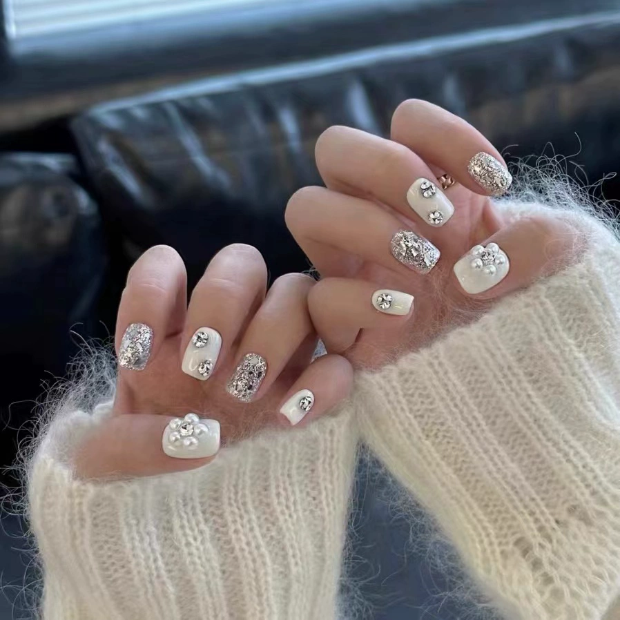 Wear Nail French Style Whitening Temperament Handmade Crystal Cat Eyes