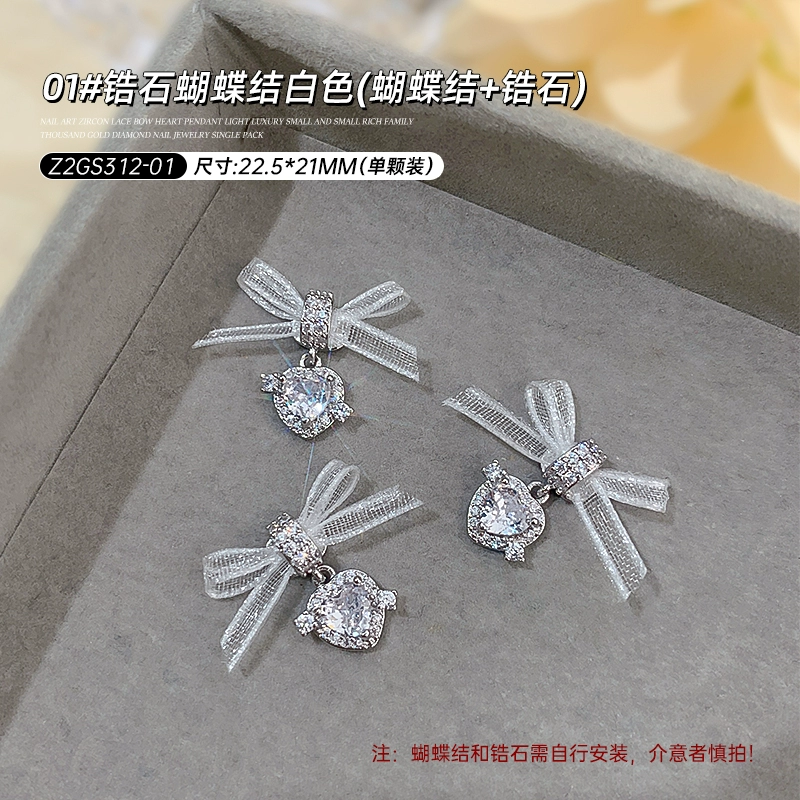 Bow Zircon Diamond New Year Lace Pendant Nail Art
