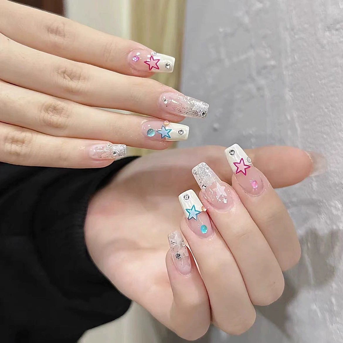 Sweet and spicy y2k diamond fake nail stickers phototherapy glitter