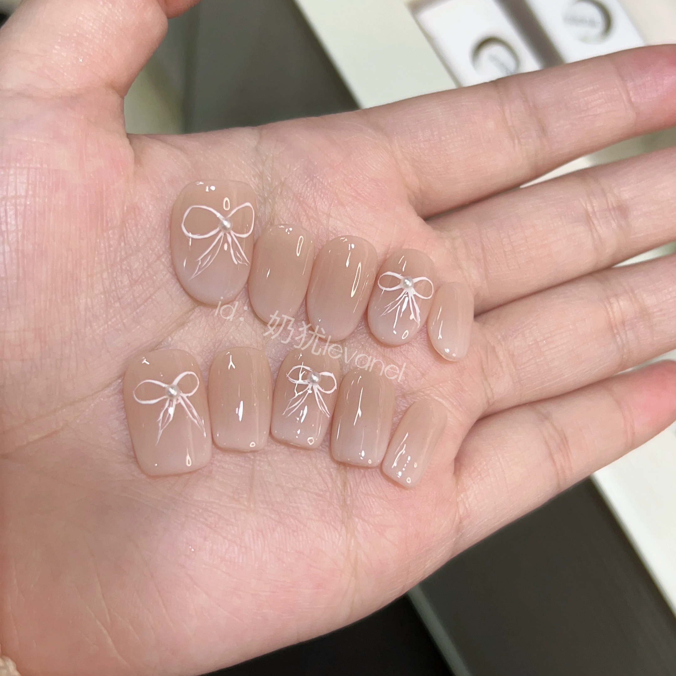 [Zhizhi Tianhua] High-quality handmade nude gradient hand-painted bow wearable nail art patch