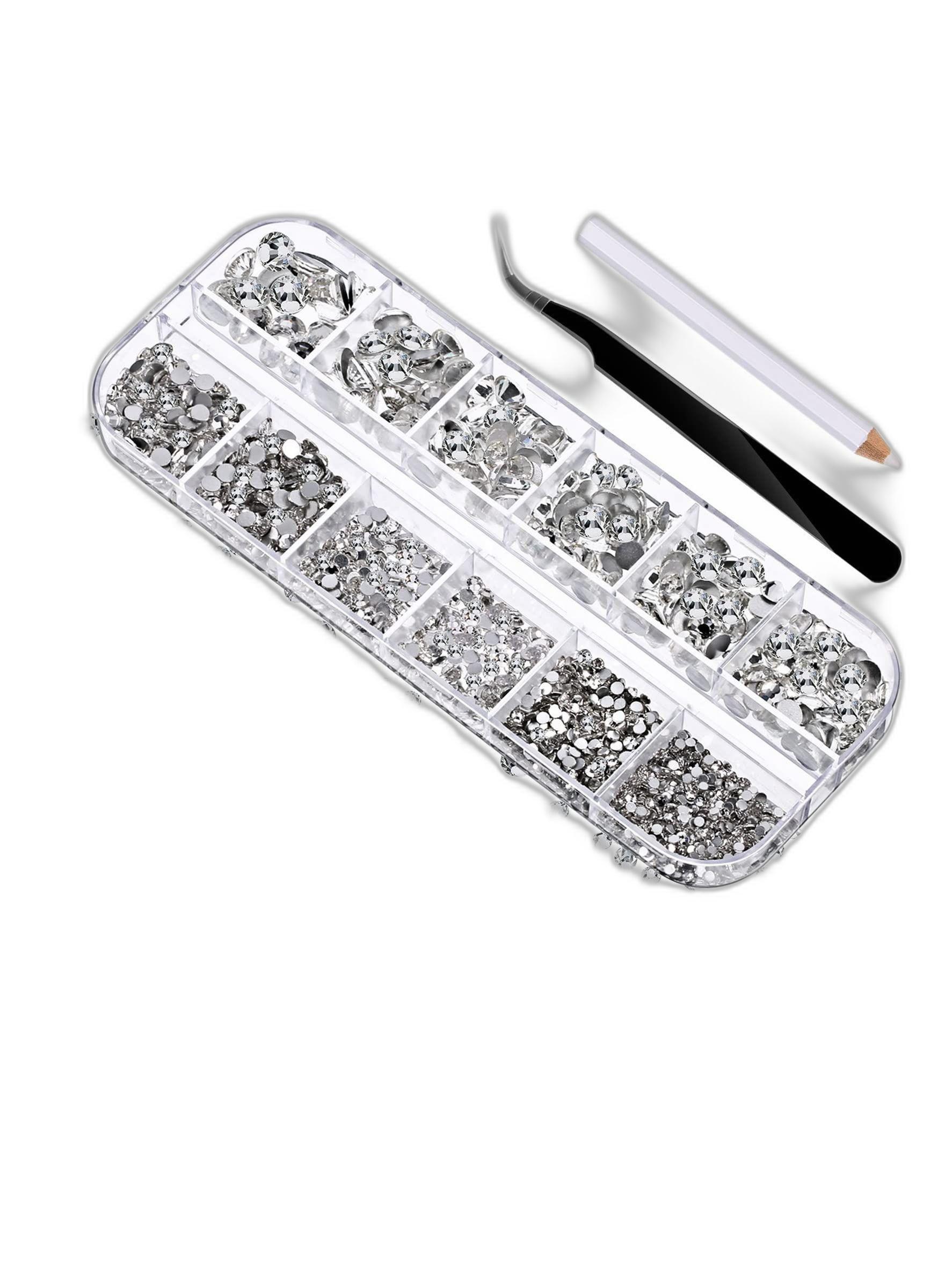 Gem Round Crystal Rhinestones Set with Accessories and Storage Box. Includes 2000 Pieces in 6 Sizes.