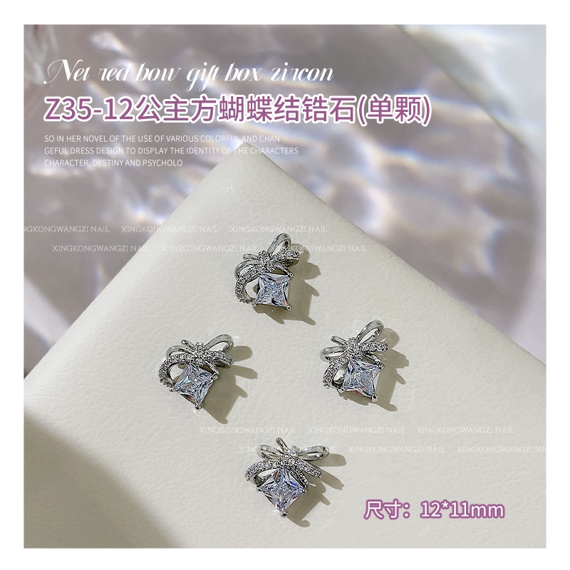 2024 New Gift Box Nail Art Jewelry Zircon Love Princess Diamond Bow Nail Decoration Single Z48
