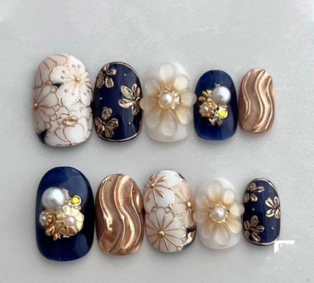 Flower three-dimensional gold and silver bee pearl nail art jewelry