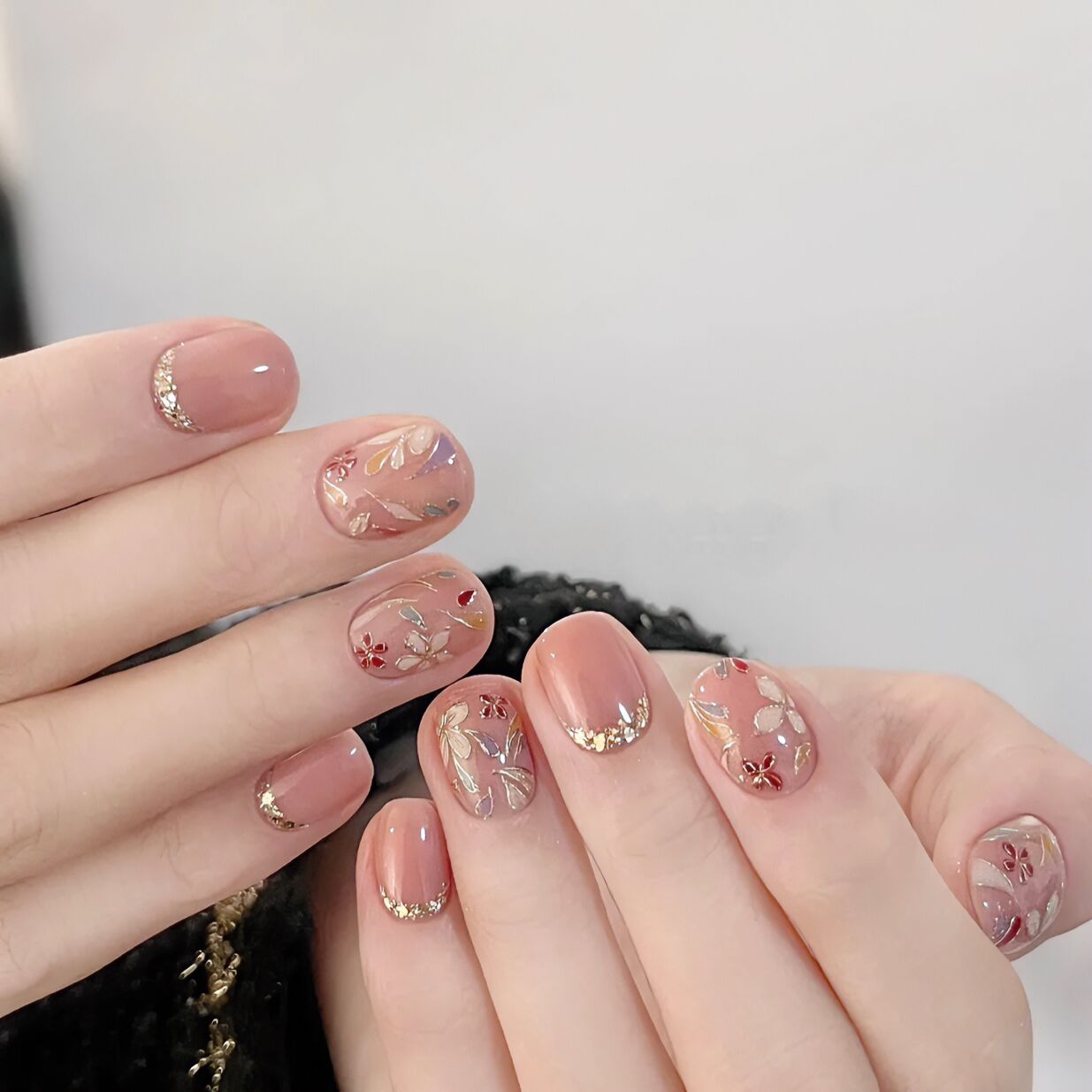 Wear Nails Hand-painted Flowers Phototherapy Nude Manicure Patch