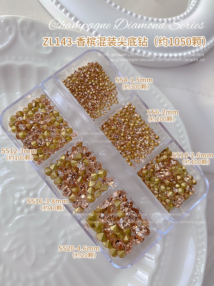 Internet celebrity champagne manicure special-shaped diamond 2023 new rabbit k9 crooked heart fat square diamond pearl nail sticker jewelry