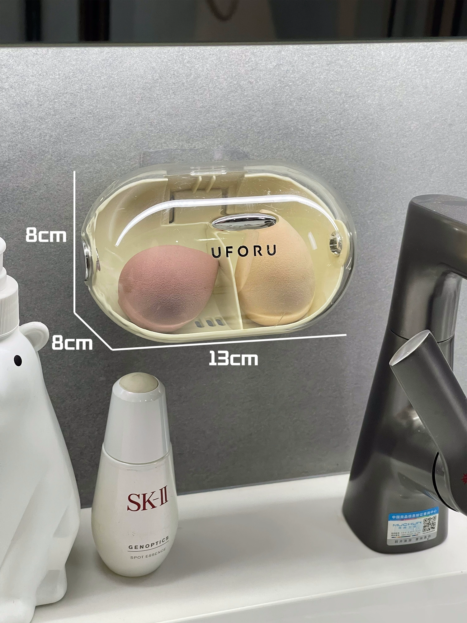 Acrylic wall-mounted powder puff holder with lid dustproof storage box